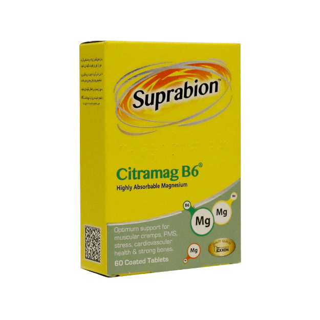 قرص سیترامگ B6 سوپرابیون فراوردهای حاوی منیزیم و ویتامین B6 است. این ترکیب نخستین بار در سال ۱۹۷۰ در فرانسه وارد بازار شد و امروزه در بیش از ۴۰ کشور در سراسر جهان به اسامی برندهای مختلف به فروش میرسد. سیترامگ-B6 منیزیم را به شکل سیترات محلول تامین میکند تا جذب بهتری در رودهها داشته باشد (در حالی که نمکهای غیر محلول منیزیم مانند اکسید منیزیم یا کربنات منیزیم این ویژگی را ندارند). به این ترتیب، ذخایر منیزیم بدن زودتر تامین میشود. مطالعاتی که سیترات منیزیم را با اکسید و لاکتات منیزیم مقایسه کردهاند، فراهم آوری زیستی (جذب) بهتری برای سیترات گزارش کردهاند. ترکیب آن با ویتامین B6 باعث افزایش فراهمی زیستی و جذب بافتی آن میشود. کمبود همزمان منیزیم و ویتامین B6 به فراوانی دیده میشود و این دو ترکیب اغلب با هم تجویز میشوند.